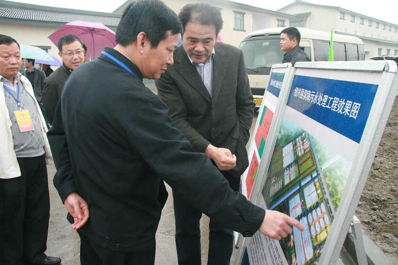 上午,由縣政協主席孟柏干帶隊的視察組冒雨視察污水集中預處理工程(一期),集團董事長倪阿泉陪同。
